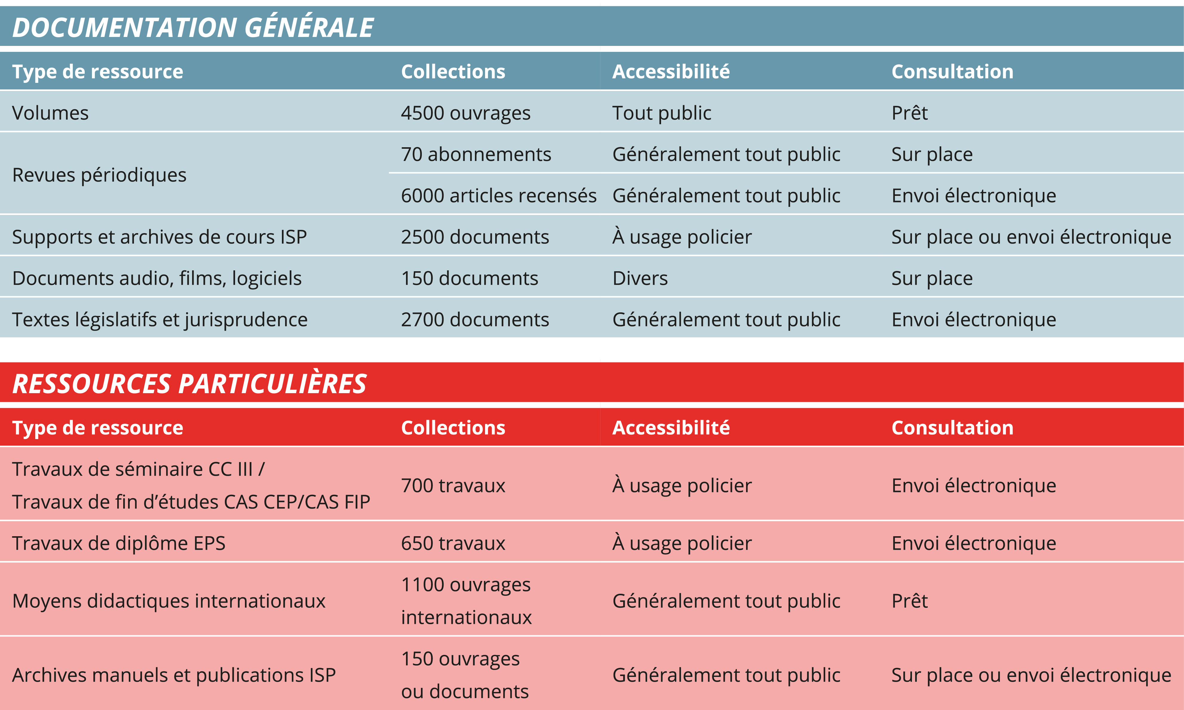 En outre, le CentreDoc enrichit, depuis 2011, une collection d'ouvrages internationaux liés à la formation policière. Plus de 1100 ouvrages publiés en Allemagne, en Autriche, en Belgique, en France, au Canada, en Italie, en Grande-Bretagne, aux États-Unis et dans d'autres pays, ainsi que des ouvrages issus d'organisations internationales sont disponibles au CentreDoc et peuvent être empruntés. Unique en Europe, cette collection offre un aperçu intéressant de tout ce qui est actuellement rédigé dans le monde sur la formation policière.